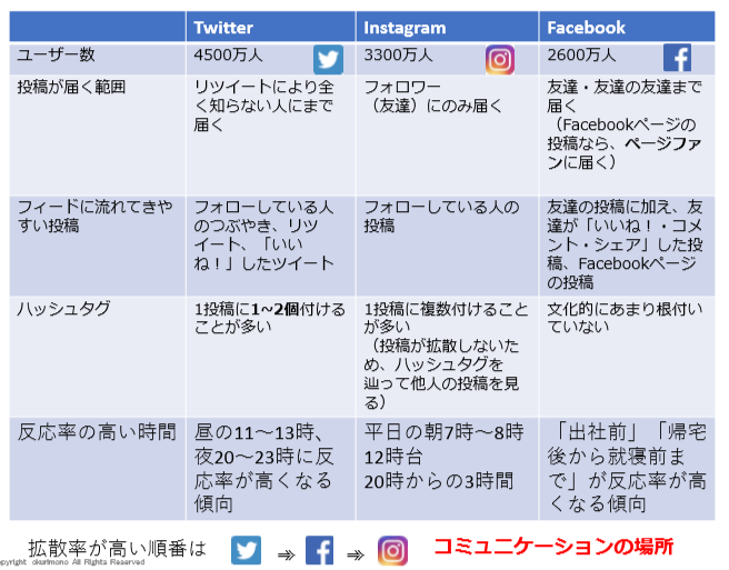 主なSNSの違いを表にまとめましたので